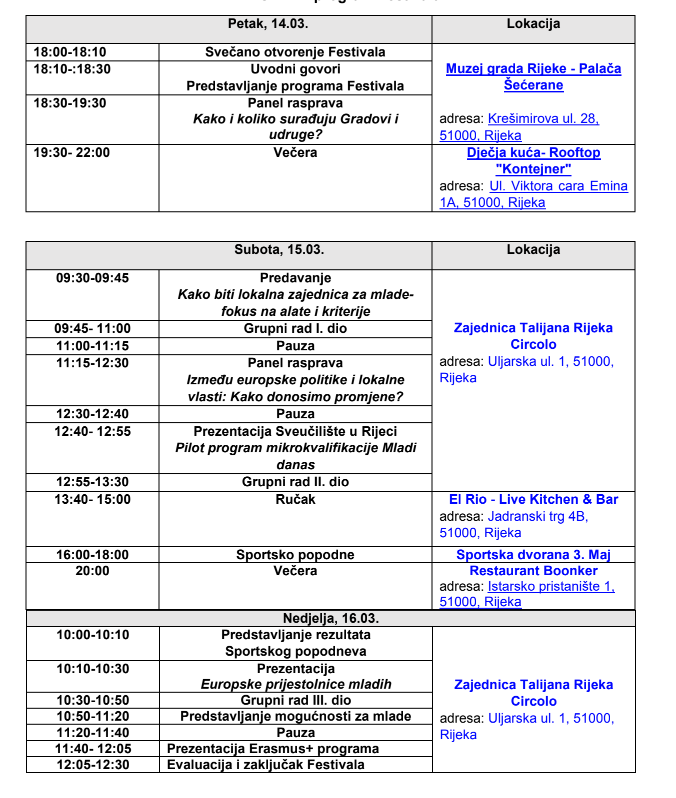 Na inicijativu Savjeta mladih Grada Rijeke održat će se, prvi u Hrvatskoj, Nacionalni festival mladih- (Po)kreni! u periodu od 14. do 16. ožujka 2025. godine u Rijeci.