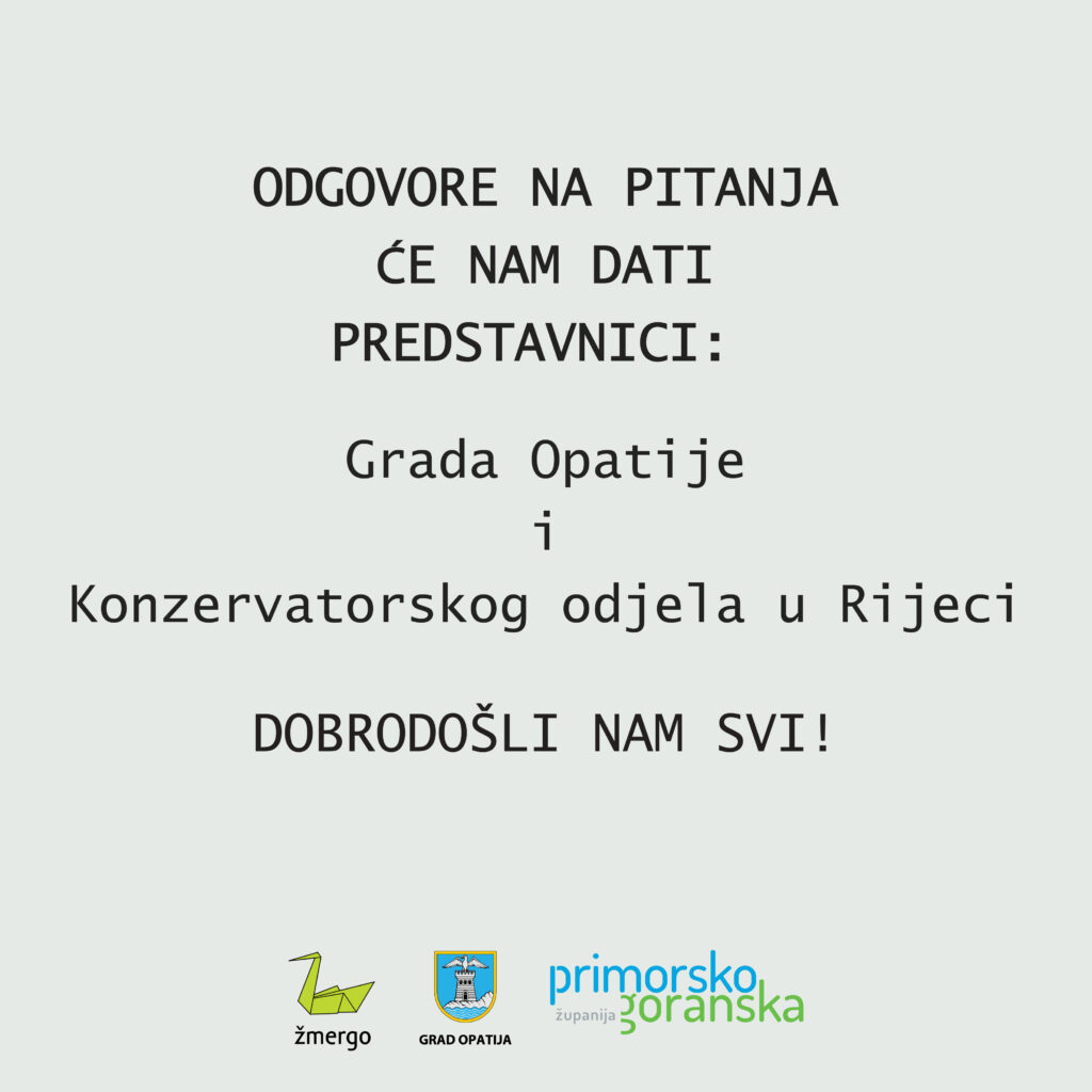Žmergo poziva sve građane, udruge i medije na neformalni razgovor, ali uz stručna mišljenja, o tome kako se Opatija razvija, što to znači za život u gradu i kako se štite prostorni identitet i kulturna baština.