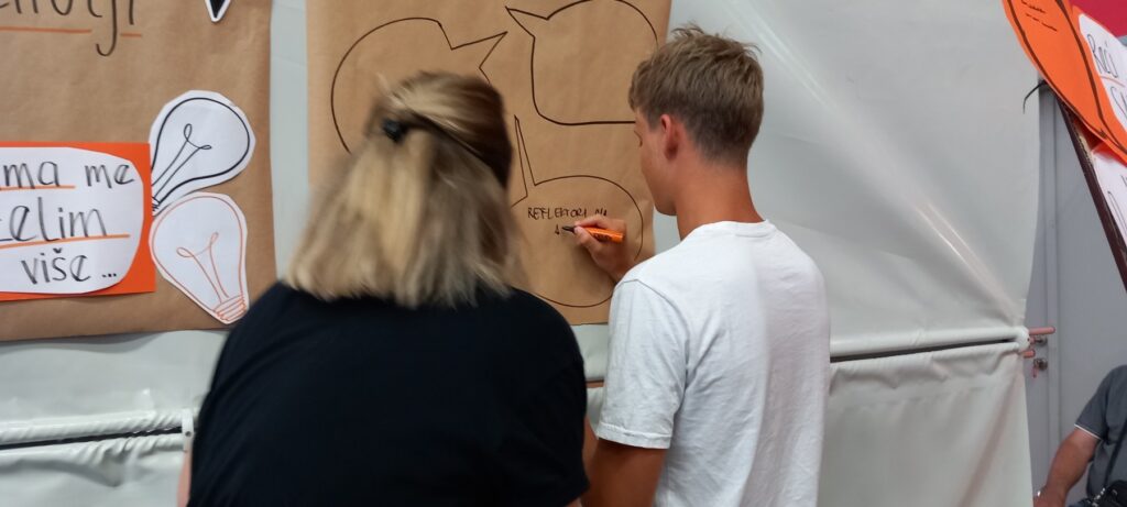 Na vizualno atraktivom panelu postavljena su pitanja na koju su mladi mogli anonimno podijelili svoja razmišljanja – kratke poruke, želje i ideje.